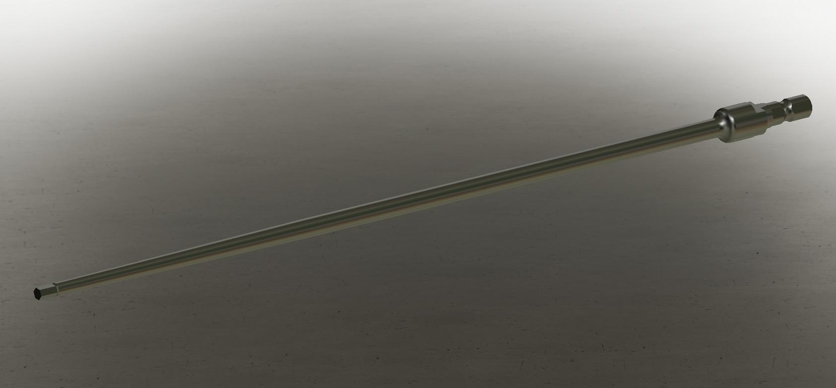 THESE EXTRA LONG SCREWDRIVER SHAFTS ARE A PERFECT COMPLIMENT TO THE HANDLES SHOWN ON THE SILICONE HANDLES PAGE. THE LENGTH SHOWN IS A 10 INCH SHAFT BUT THEY CAN BE MADE IN ANY LENGTH WITH SEVERAL STYLES OF QUICK-CONNECTS.